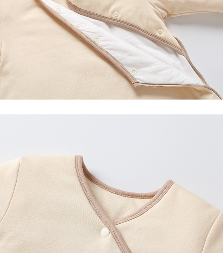 The structure features a soft, padded body that wraps your baby in comfort while allowing freedom of movement within a secure shape. Thoughtfully designed closures – zip with snap guard or buttons, depending on version – make bedtime easier without fuss, eliminating the need for loose blankets that can tumble away in sleep.