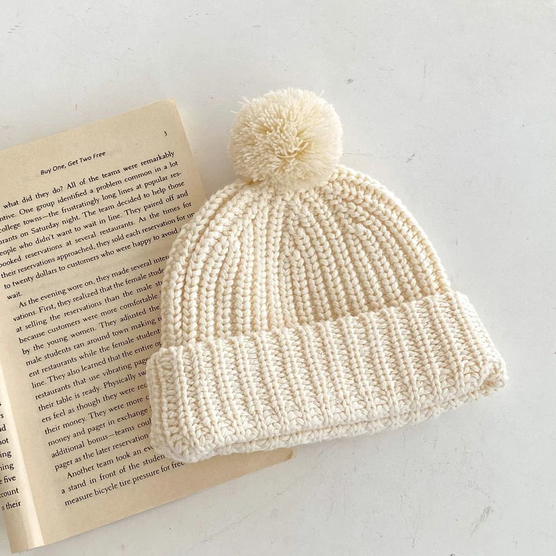 Baby Knitted Hat with Fleece Lining and Pom Pom