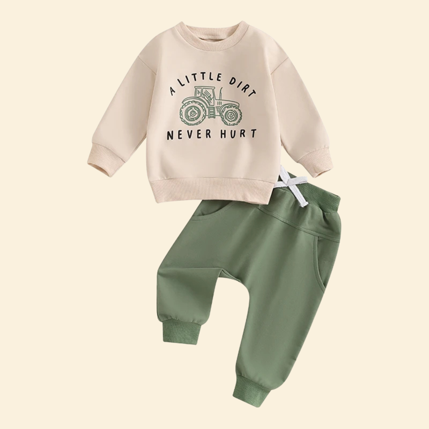 Wrap your little boy in simple, practical style with this two-piece Casual Baby Tractor Outfit Set a cozy ensemble made for cooler days when comfort and ease matter most. The pullover-style top and matching bottoms are designed to slip on quickly and move with your child, offering fuss-free dressing for busy mornings and sleepy evenings alike. The set’s long sleeves add gentle warmth, while the clean “letter” pattern gives the outfit a playful yet understated look that pairs well with boots, sneakers, or a cardigan for layering