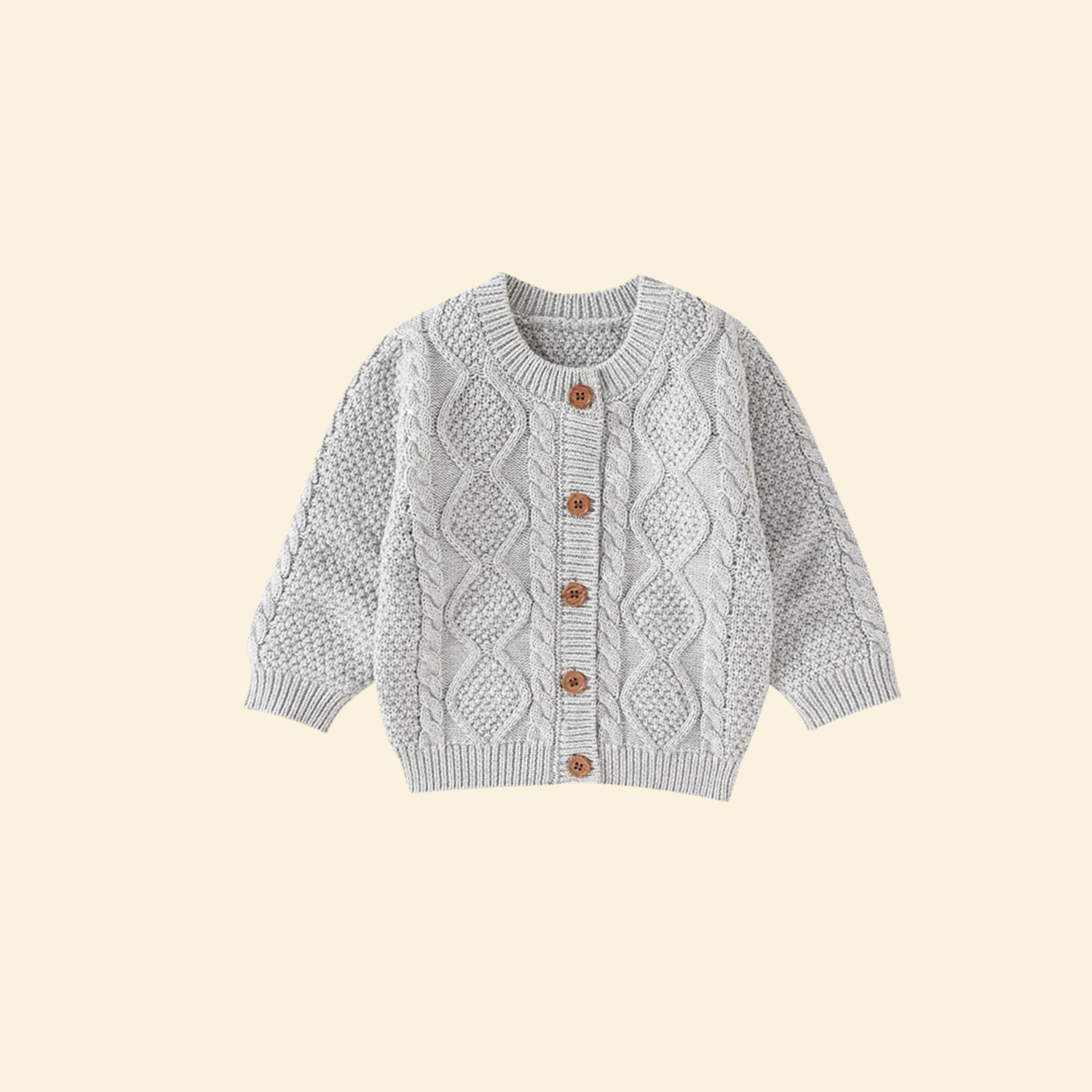 With size options ranging from 3M up to 36M, this cardigan is thoughtfully tailored to grow with your baby, offering comfort and flexibility through every stage. Whether layered over a romper, paired with soft pants, or worn alone during cooler weather, this cardigan brings a touch of refined coziness to everyday adventures.