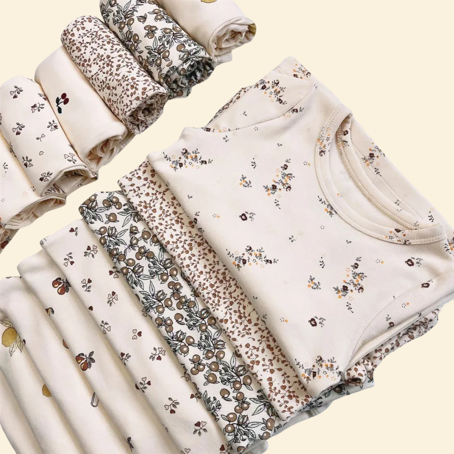 Both looks are united by charming all-over prints whimsical florals or curious patterns that bring a touch of personality to bedtime. Designed with comfort in mind, each set boasts elastic waistbands for flexible fit, and intuitive closures that make nighttime routines seamless.