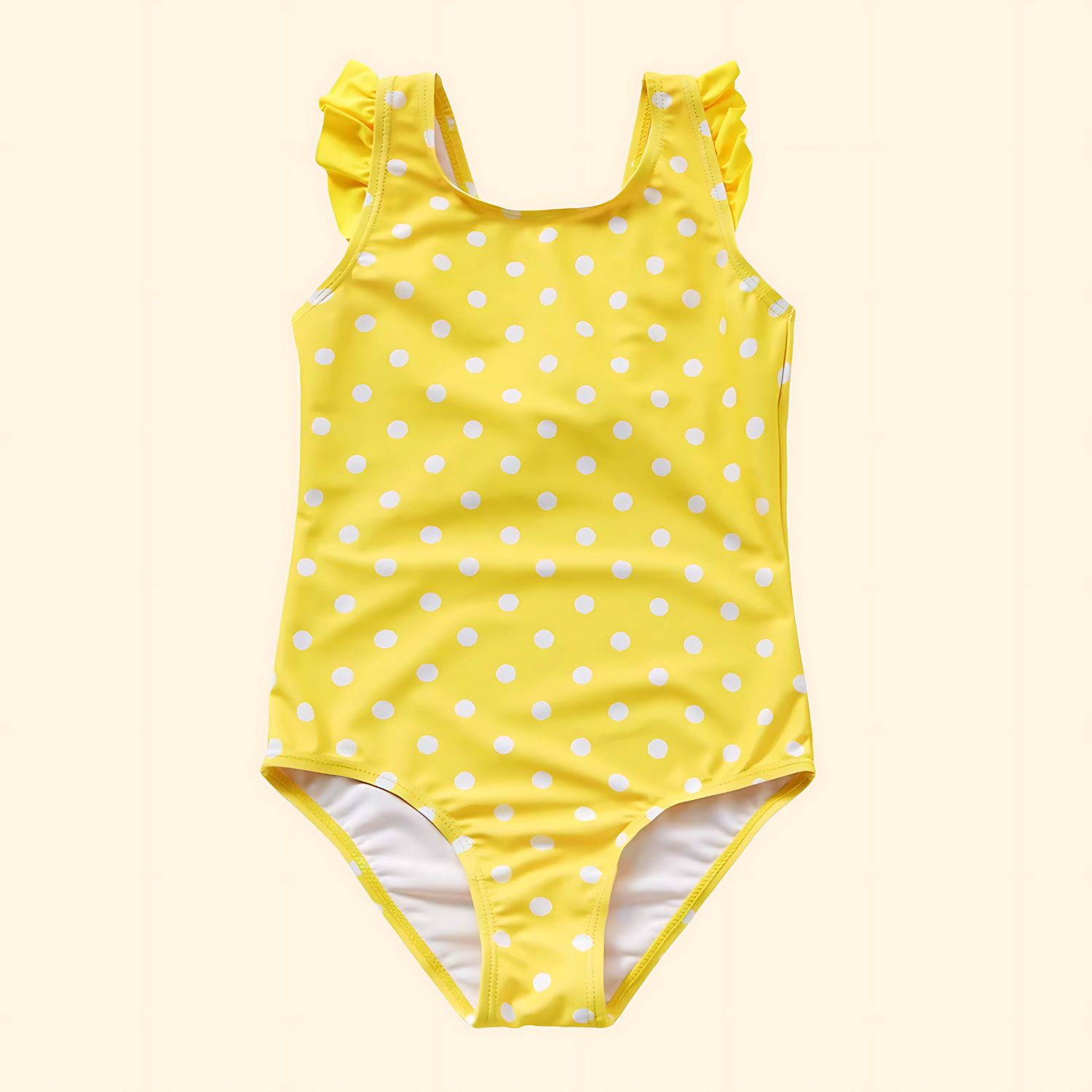 Effortlessly blending sunny cheerfulness with graceful design, the Yellow Pois Swimsuit transforms any water outing into a celebration of style and comfort perfect for the little one who shines brightest by the pool or on the sand.